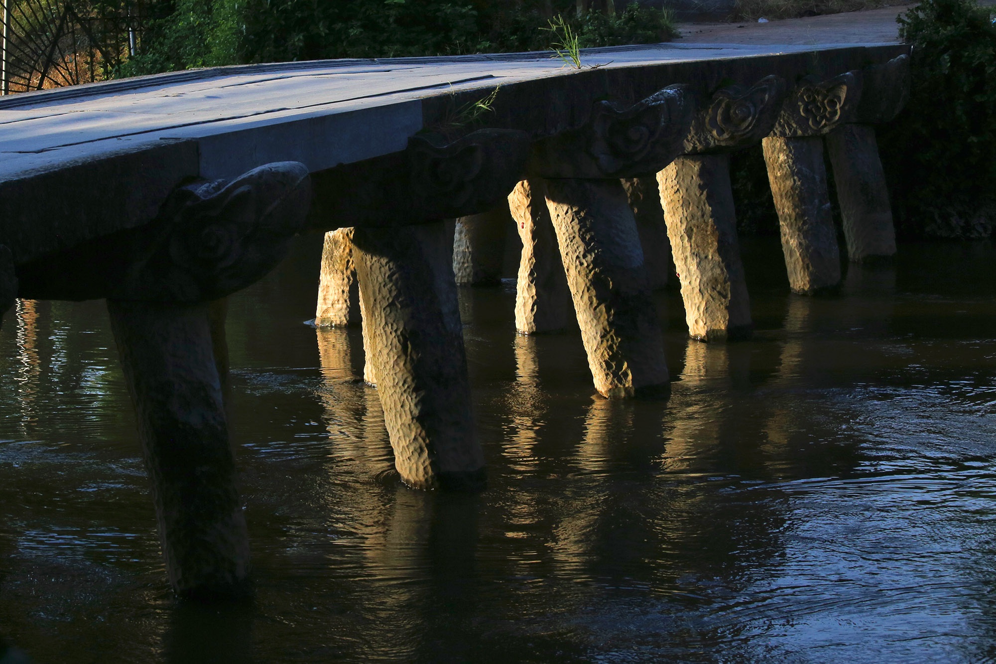 Cầu đá được ghép bằng những phiến đá lớn, hai bên thành cầu chạm khắc hình đầu rồng, cầu có các trụ đá chống đỡ. Không chỉ mang giá trị lịch sử, văn hóa, chiếc cầu đá này còn được các nhà nghiên cứu di sản đánh giá là một công trình độc đáo chưa từng thấy ở bất cứ làng cổ nào của đồng bằng sông Hồng.