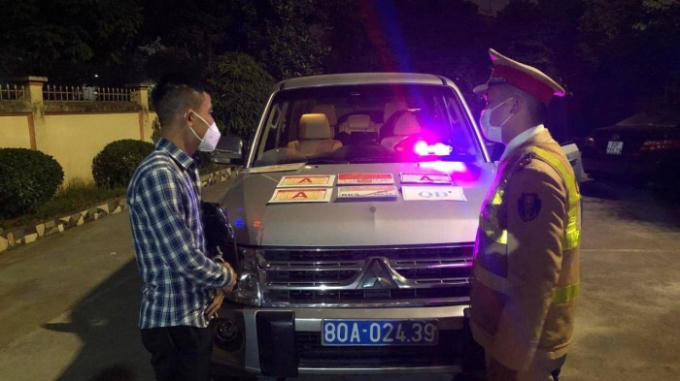 Lái xe là Trần Văn Dân (SN:1985, ở phường Thượng Đình, quận Thanh Xuân, Hà Nội) không xuất trình được giấy đăng ký xe hợp lệ, không lý giải được việc trang bị đèn ưu tiên như xe "đặc chủng" cùng nhiều phù hiệu trên xe.