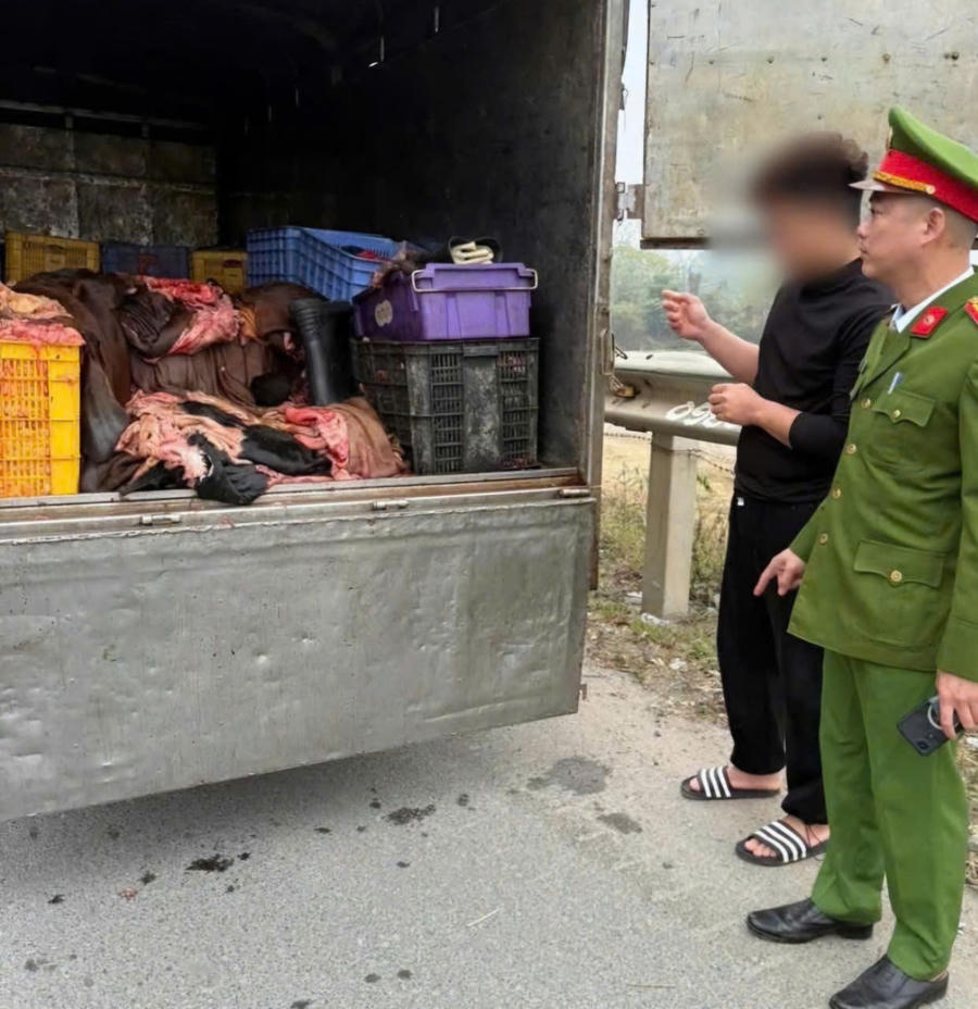 Quá trình kiểm tra xác định xe ô tô tải mang biển kiểm soát 29H-168… do Đào Văn V. (sinh năm 1996, trú tại xã Thư Lâm, TP Hà Nội) điều khiển. Trên xe đang chở khoảng 1,2 tấn sản phẩm động vật, gồm mỡ và da trâu, bò. Tuy nhiên, tại thời điểm làm việc, lái xe không xuất trình được giấy chứng nhận kiểm dịch cũng như các loại giấy tờ hợp pháp liên quan đến nguồn gốc, xuất xứ của số hàng hóa này.
