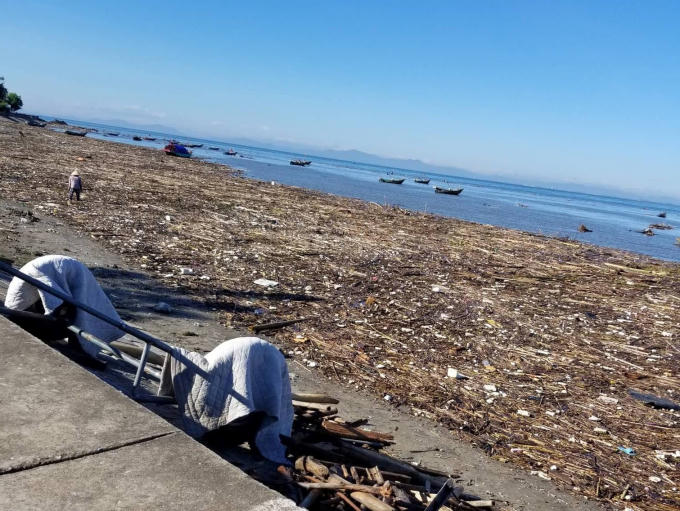 Việc rác thải tập kết với mức độ dày đặc, trôi lềnh bềnh trên bờ biển đã khiến việc sinh hoạt, sản xuất của người dân nơi đây gặp khó khăn.