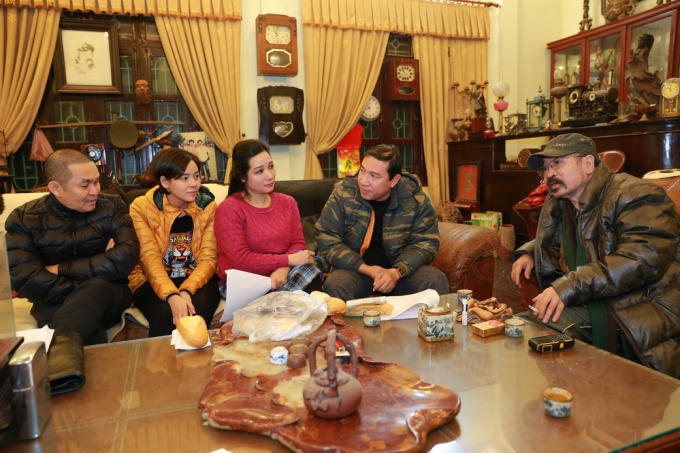 Dưới sự chỉ đạo diễn xuất của đạo diễn Lê Hùng, nghệ sĩ Xuân Hinh và Thanh Thanh Hiền, Quang Thắng vừa “gặm” bánh mì vừa tập luyện.