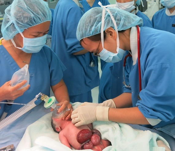 Để không bỏ sót các dị tật tiềm ẩn, chị Hà đã được chọc ối xét nghiệm gen. Trên cơ sở xét nghiệm gen khẳng định không có bất thường, bác sĩ Hồ Trung Hiếu – người trực tiếp chăm sóc thai sản cho chị Hà đã tư vấn gia đình yên tâm dưỡng thai, theo dõi bé đến tuần thứ 38 để mổ lấy thai và phẫu thuật ngay sau sinh.