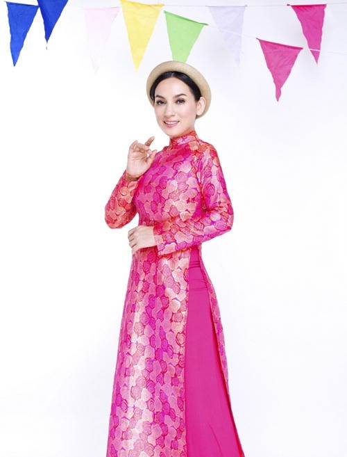 Trong trang phục áo dài của nhà thiết kế Thủy Nguyễn, nữ ca sĩ Phi Nhung trông rất xinh đẹp và đằm thắm.