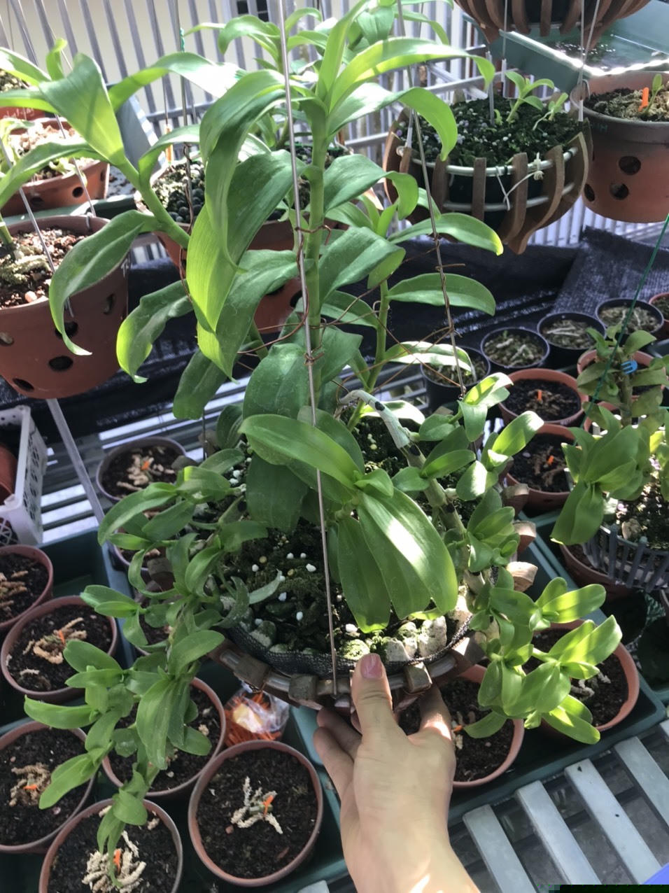 Chị Lưu Thuỳ Ngân bên những chậu lan quý vừa mua.