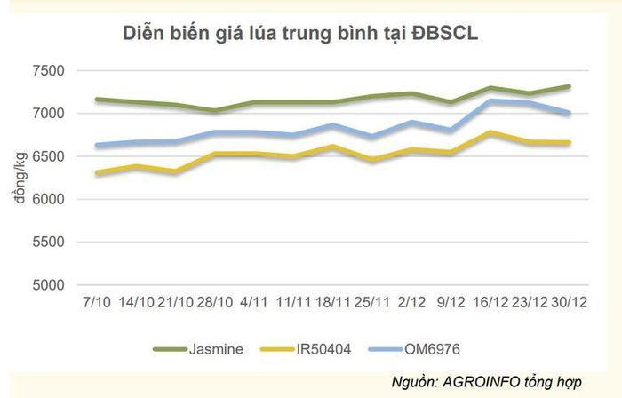 Giá lúa OM6976 (khô) trung bình tại một số tỉnh Đồng bằng sông Cửu Long đạt 7.010 đồng/kg.4