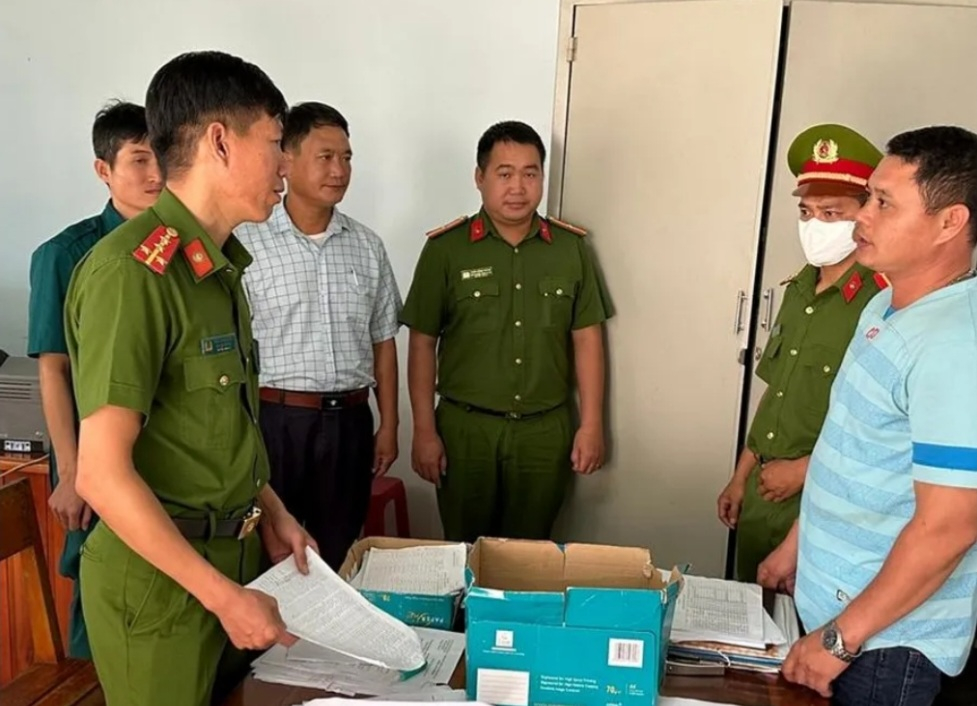 Cơ quan Công an đọc lệnh khởi tố vụ án, khởi tố bị can và bắt tạm giam Nguyễn Thành Trung để phục vụ điều tra. Ảnh: N.C