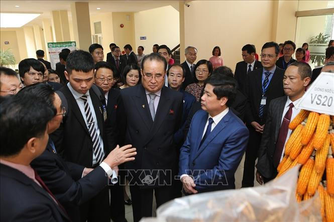 Sáng 28/2, tại Hà Nội, phái đoàn cấp cao nhà nước Triều Tiên do Phó Chủ tịch Đảng Lao động Triều Tiên Ri Su Yong dẫn đầu đã đến thăm Viện Khoa học Nông nghiệp Việt Nam.