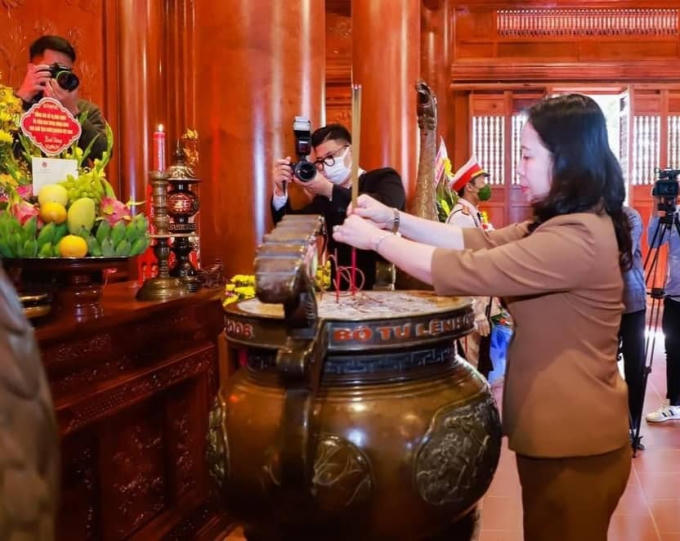 Trước đó, đồng chí Võ Thị Ánh Xuân đã đến dâng hương tưởng niệm Chủ tịch Hồ Chí Minh tại Khu Di tích quốc gia đặc biệt Kim Liên; dâng hoa, dâng hương tưởng niệm các Anh hùng Liệt sỹ tại Khu Di tích lịch sử quốc gia Truông Bồn.