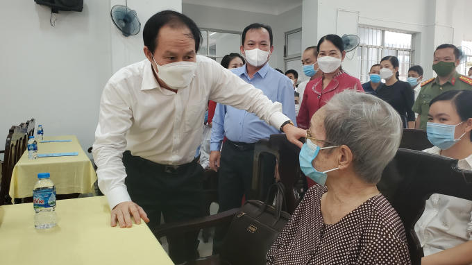 Ông Lê Tiến Châu, Phó Chủ tịch, Tổng thư ký Uỷ ban TW MTTQVN thăm hỏi bà con.