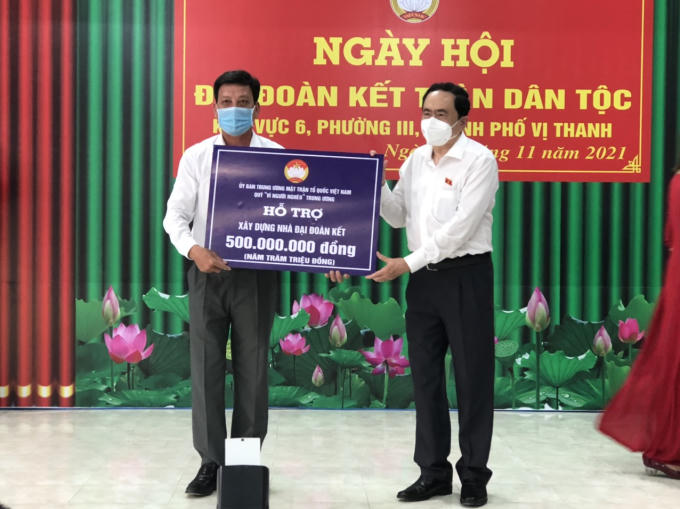 Ủy viên Bộ Chính trị, Phó Chủ tịch Thường trực Quốc hội Trần Thanh Mẫn tặng nhà nhà Đại đoàn kết cho nhân dân phường 3 thành phố Vị Thanh.