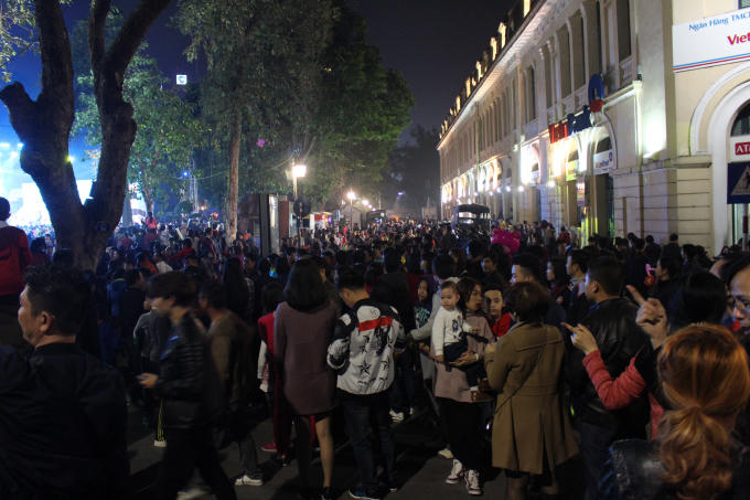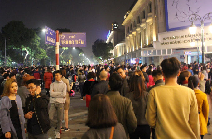 Người dân Thủ đô lại được chứng kiến một "biển người" đông đúc, đặc biệt là tại các khu vực như phố Đinh Tiên Hoàng, Tạ Hiện, Tràng Tiền,... lượng người đổ về ngày một đông khiến nhiều đoạn đường tắc nghẽn nghiêm trọng.