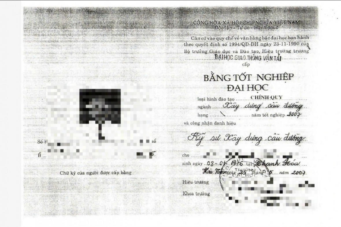 Trong quá trình rà soát, Cục Quản lý hoạt động xây dựng gửi văn bản đến Trường Đại học Giao thông vận tải để xác thực bằng cấp này.