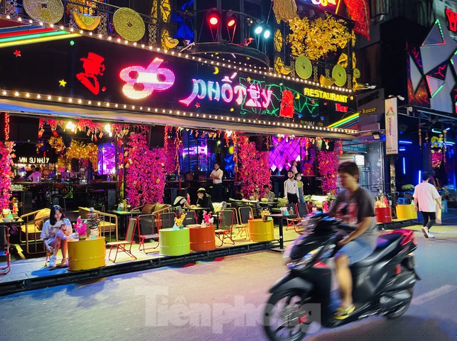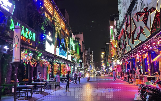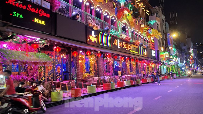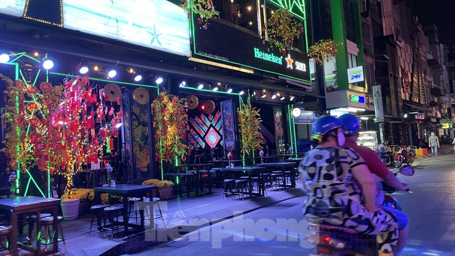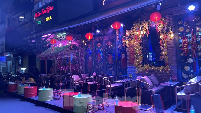 Ghi nhận tối 5/2, phố Tây Bùi Viện vắng khách đến vui chơi dù là dịp cuối tuần. Cả con phố thưa người và xe cộ. Các quán bar dọc hai bên phố rơi vào cảnh đìu hiu, khác hẳn với khủng cảnh khách đông nghìn nghịt những đêm cuối tuần trước đây. Nhiều hàng quán dọc hai bên phố đóng cửa nghỉ Tết từ sớm.