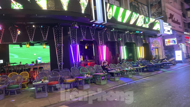 Các quán bar dọc hai bên phố cũng đìu hiu, bàn ghế không có khách ngồi.