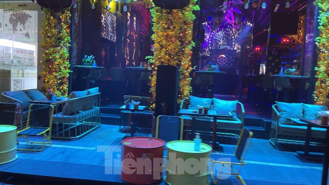 Quán bar trang trí đón Tết rất rực rỡ nhưng vắng khách.