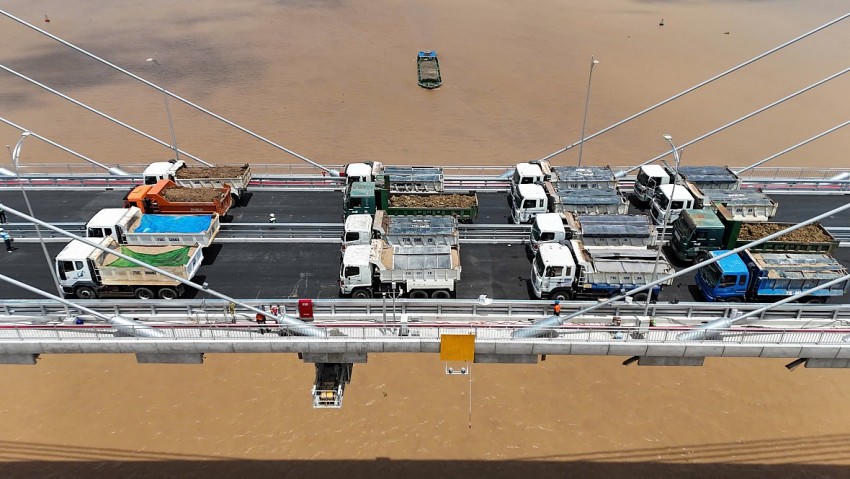 Công tác thử tải cầu đã được triển khai trong những ngày cuối tháng 7. Cụ thể, ngày 28/7 tiến hành đo lực căng dây văng ở trạng thái không tải. Ngày 29/7, thực hiện đo ứng suất, độ võng dầm dọc; đo ứng suất bản mặt cầu; ứng suất dầm ngang; chuyển vị đầu dầm; ứng suất chân trụ tháp và trụ neo. Trong đó, sơ đồ tải trọng lớn nhất sử dụng 28 xe tải mỗi xe có tải trọng từ 25 đến 30 tấn. Thời gian mỗi lần đoàn xe ra vào cầu từ 15 đến 20 phút. Ngày 30/7, thực hiện đo lực căng dây văng ở trạng thái có tải với sơ đồ tải này sử dụng 8 đến 12 xe tải mỗi xe có tải trọng từ 25 đến 30 tấn. Thời gian mỗi lần đoàn xe ra vào vị trí đo từ 5 đến 10 phút.