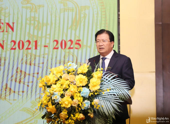 Phó Thủ tướng Chính phủ Trịnh Đình Dũng phát biểu kết luận hội nghị. ( Ảnh: Báo Nghệ An / Phạm Bằng)