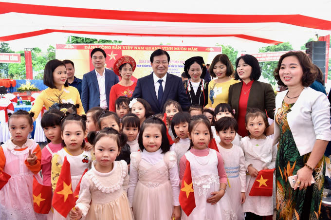 Phó Thủ tướng Trịnh Đình Dũng chụp ảnh lưu niệm cùng học sinh và giáo viên - Ảnh: VGP/Đoàn Bắc