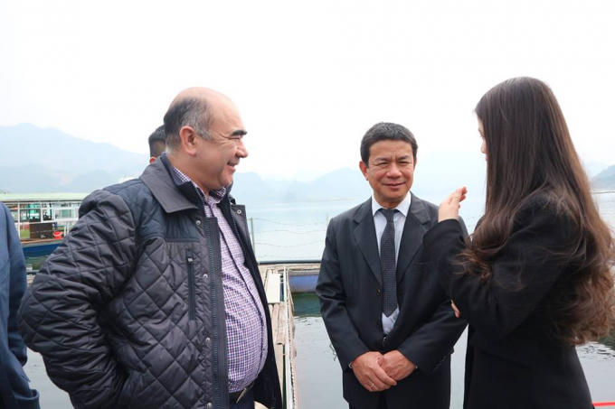 Ngài Mirzaev Zoiyr đã đến thăm trang trại cá tầm Việt - Đức của ông Nguyễn Trọng Cử tại hồ sông Đà, huyện Đà Bắc, Hòa Bình.