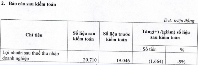 Nguyên nhân chỉ tiêu lợi nhuận sau thuế tăng sau kiểm toán tăng so với số liệu công bố nguyên nhân là do điều chỉnh giảm chi phí hoạt động dẫn đến lợi nhuận tăng.