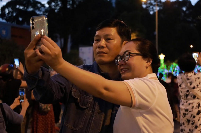 Nhiều gia đình và các bạn trẻ tập trung về các nhà thờ, xóm đạo, khu vực trung tâm tận hưởng không khí Giáng sinh ấm áp và náo nhiệt dịp cuối năm.