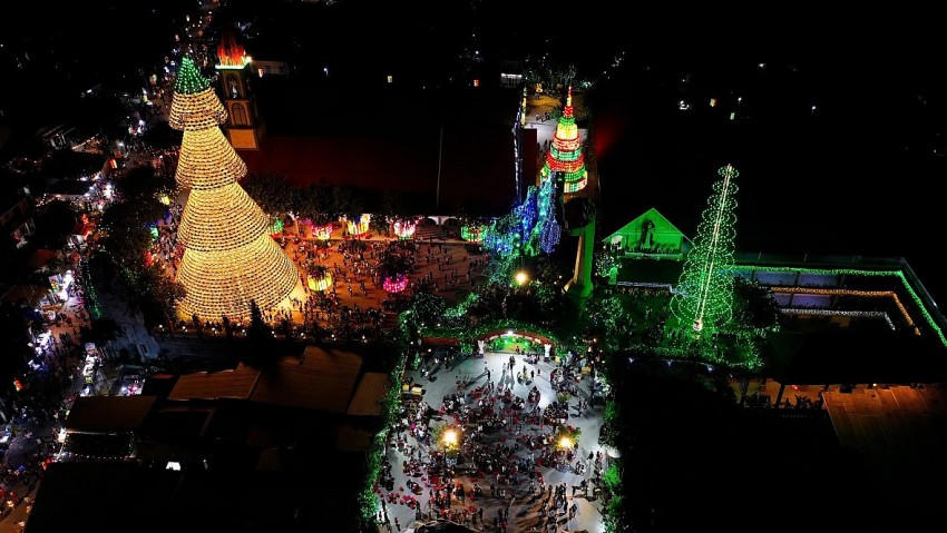 Nhiều nhà thờ, xóm đạo trang hoàng lộng lẫy, lung linh ánh đèn đủ sắc màu trong mùa giáng sinh này.