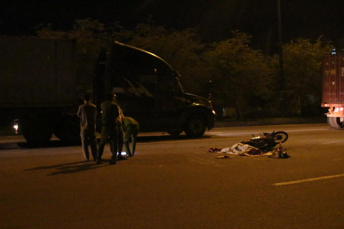 Tại hiện trường, thi thể nạn nhân nằm bên cạnh chiếc xe máy, phần đầu xe máy bể nát, cách đó khoảng 50m là chiếc xe container. Sau tai nạn, nam tài xế đã vào công an phường trình báo.