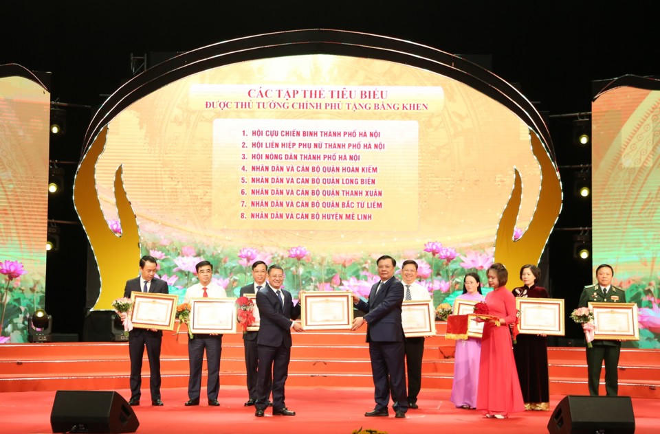 Bí thư Thành ủy Hà Nội Đinh Tiến Dũng trao Bằng khen của Thủ tướng Chính phủ cho các tập thể tiêu biểu thuộc TP Hà Nội.