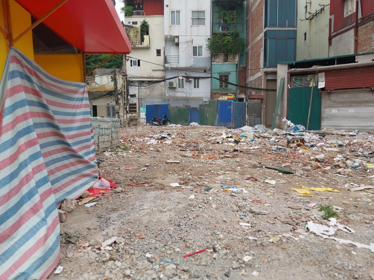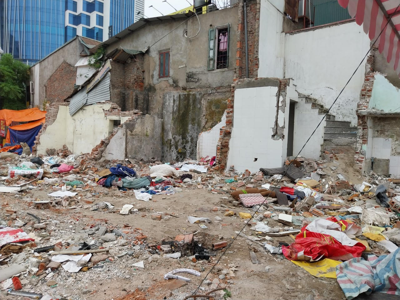 Tại khu vực giải phóng mặt bằng (GPMB) nút giao Chùa Bộc - Thái Hà (quận Đống Đa, Hà Nội), rác thải, gạch đá chất đống, bừa bộn… gây mất mỹ quan đô thị, ảnh hưởng đến cuộc sống của người dân.