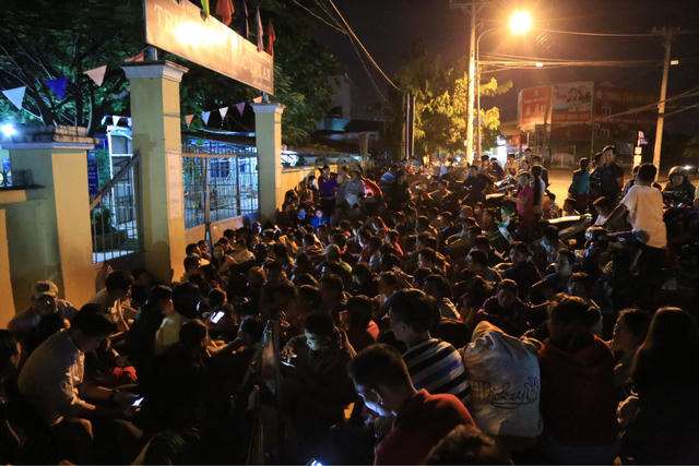 Hôm nay 26/6, Nhiều người đã mang theo chiếu, gối tập trung trước trường TH Tuy An (TX. Thuận An, Bình Dương) để chờ xin học cho con vào lớp 1 .