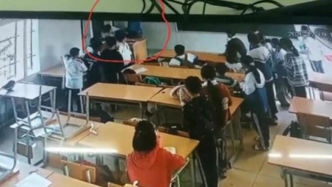 Hình ảnh phụ huynh xông vào trường đánh nam sinh ở Điện Biên được camera ghi lại.