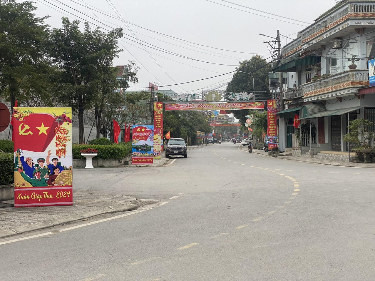 Tết Nguyên đán 2024 đang đến gần, những ngày này, các tuyến đường trên địa bàn huyện đã được trang hoàng rực rỡ cờ hoa, băng rôn, khẩu hiệu mừng Đảng, mừng Xuân làm cho không khí đón Tết Nguyên đán thêm vui tươi, phấn khởi và rộn ràng.