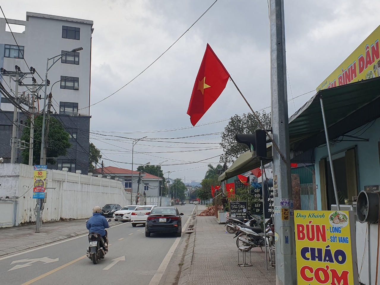 Chuẩn bị đón Tết, khắp nơi ở các tuyến đường ở trung tâm thị trấn Hạ Hoà được treo cờ Tổ quốc.