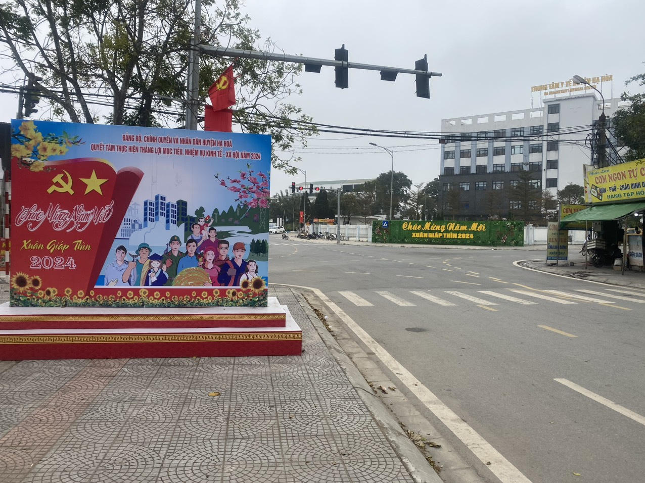 Tại các tuyến phố trung tâm huyện lỵ huyện Hạ Hoà trong những ngày sắp Tết Nguyên Đán Giáp Thìn năm 2024 đều rực rỡ cờ hoa, mừng Đảng, mừng Xuân.