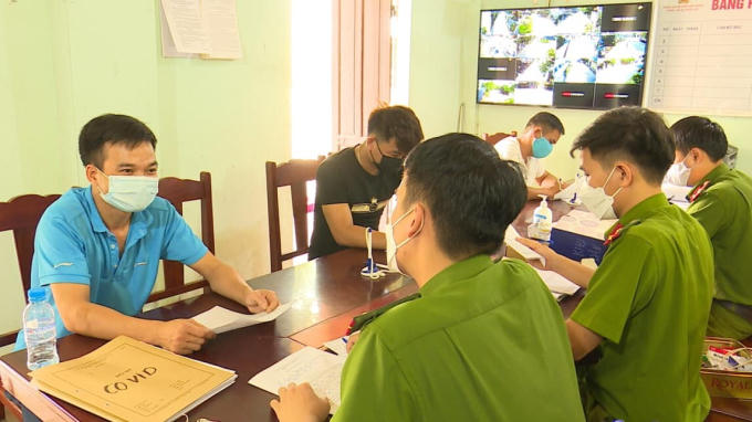 Công an huyện Phù Ninh tiến hành làm việc với những người vi phạm quy định phòng chống dịch.