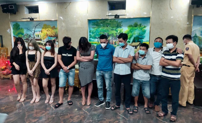 Tại thời điểm kiểm tra phòng VIP2 của quán, phát hiện 13 thanh niên gồm 7 nam, 6 nữ tụ tập hát hò bất chấp lệnh cấm hoạt động.