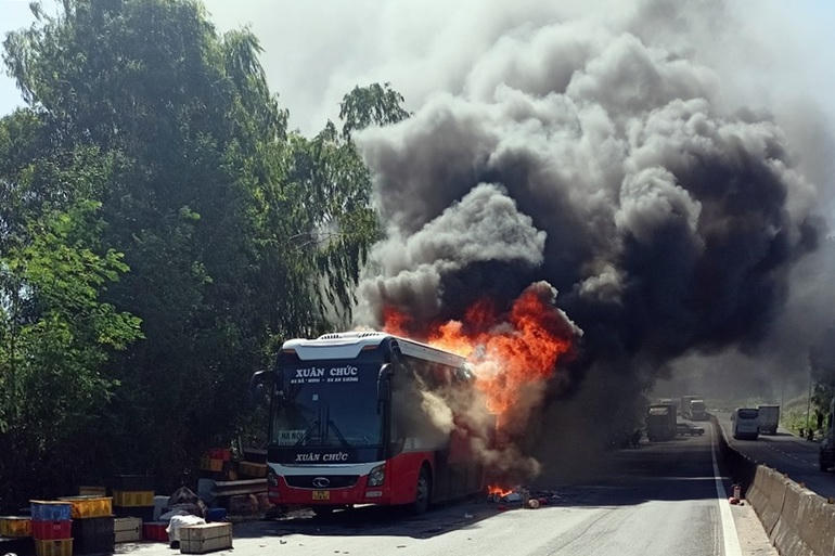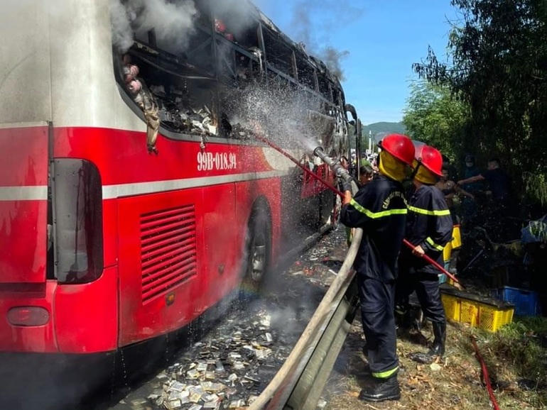 Khi đang lưu thông trên quốc lộ 1, đoạn qua thị xã Sông Cầu (Phú Yên), một chiếc xe khách mang biển số Bắc Ninh bất ngờ bốc cháy dữ dội khiến hàng chục hành khách hoảng loạn bỏ chạy.