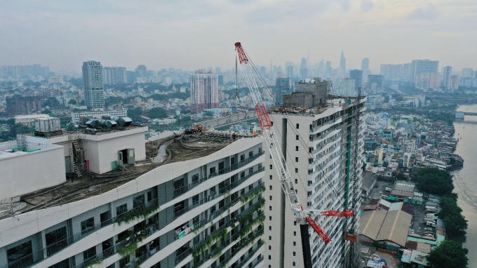 Cầu dây văng nối Block A và B đã hoàn thành.