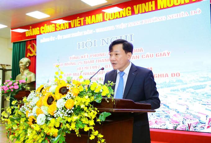 Ông Nguyễn Văn Chiến - Phó Bí Thư Thường trực Quận uỷ, Chủ tịch HĐND quận Cầu Giấy phát biểu.