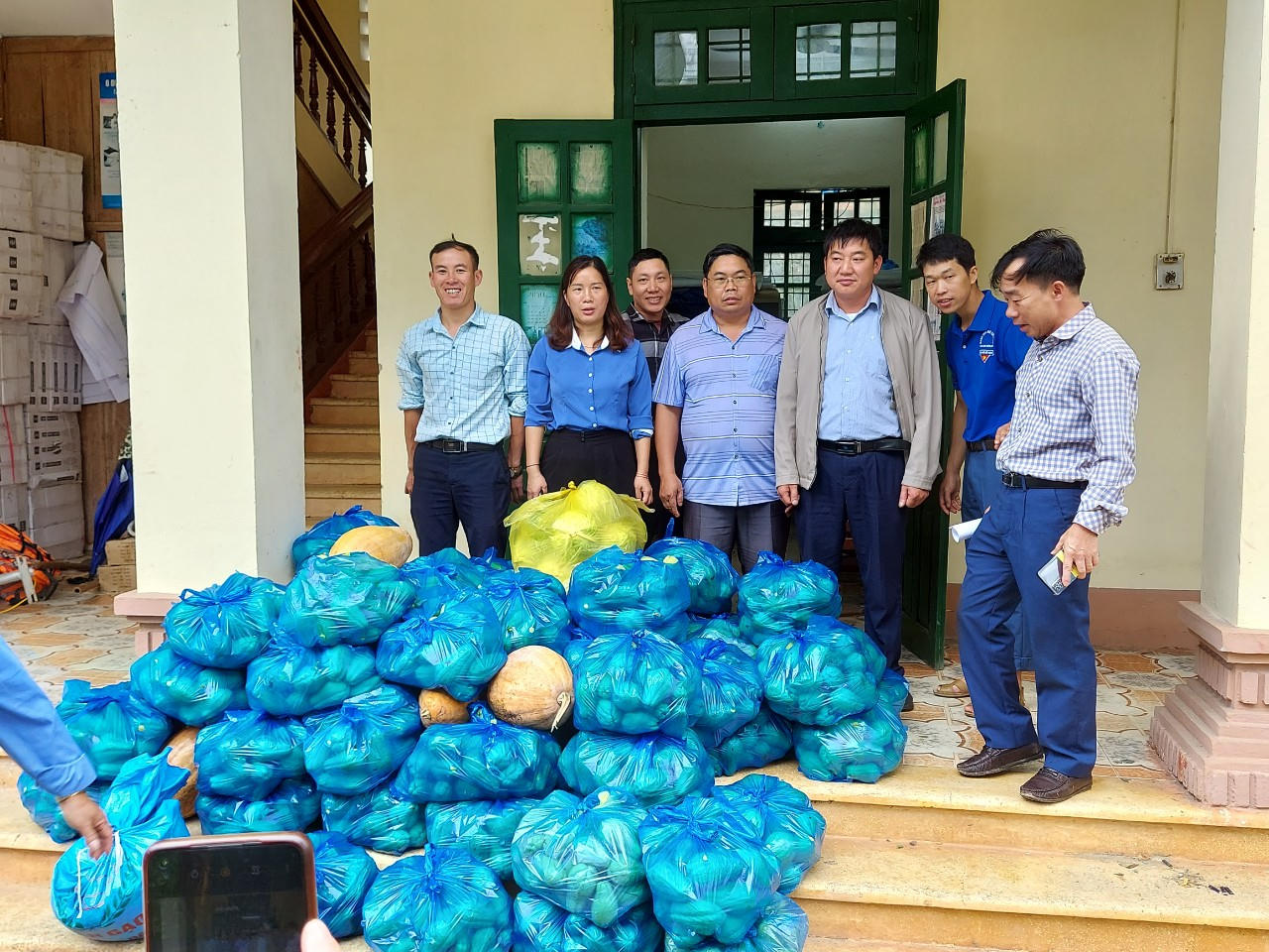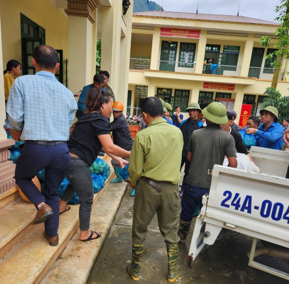 Ngay sau khi huy động được rau, củ lãnh đạo và các cán bộ xã đã trực tiếp chở tới xã Liên Minh để hỗ trợ người dân và các cán bộ đang làm nhiệm vụ tìm kiếm, khắc phục hậu quả mưa lũ tại đây.