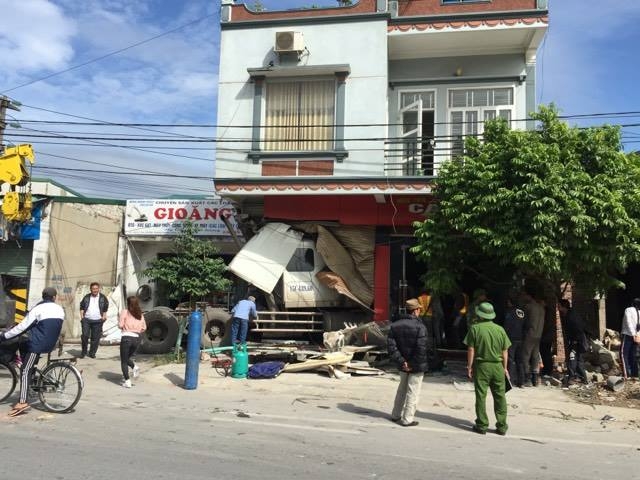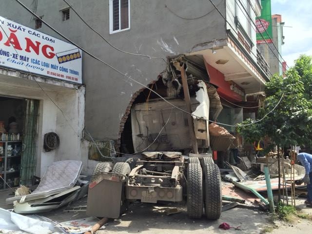 Đang lưu thông trên đường thì bất ngờ chiếc xe container bất ngờ mất lái đâm thẳng vào nhà dân, khiến toàn bộ tầng một bị hư hại.