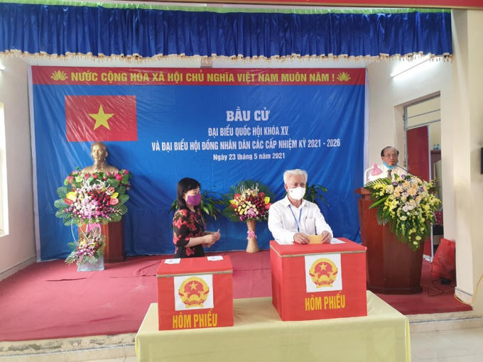 Chủ nhiệm Ủy ban Kiểm tra Thành ủy Nguyễn Đình Chuyến tham gia bầu cử tại xã Đoàn Lập, huyện Tiên Lãng.