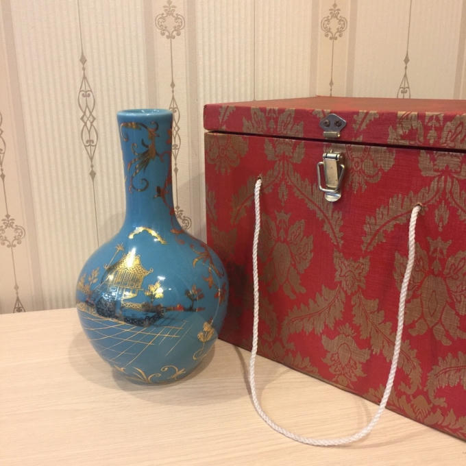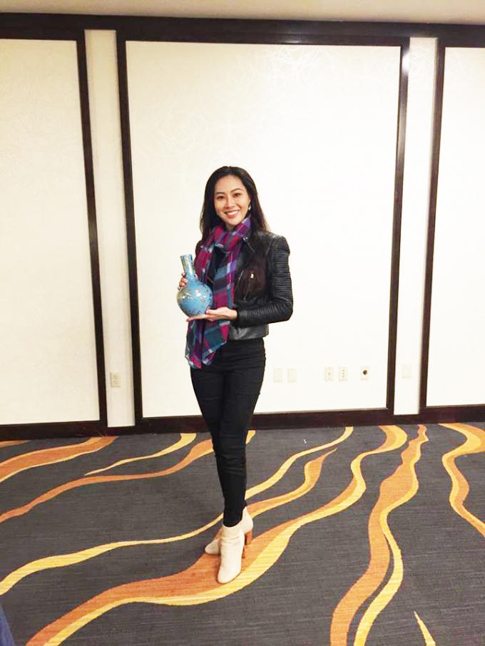 Chiếc bình hoa bằng gốm dát vàng có hình chùa Một Cột là vật phẩm mà Diệu Ngọc mang ra đấu giá từ thiện tại Miss World 2016.