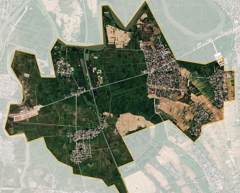 Ảnh vệ tinh xã Diễn Phúc, huyện Diễn Châu, tỉnh Nghệ An, nơi có 28 lô đất bán theo hình thức đấu giá vừa bị bỏ cọc (Ảnh: Satelite Map).