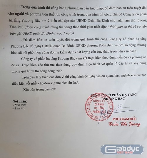 Việc này đã được thể hiện tại Văn bản số 6672/VP-ĐT ngày 3/08/2016 của UBND thành phố Hà Nội.