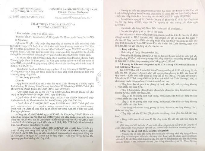 Theo đó, Dự án khu nhà ở sinh thái Xuân Phương được UBND TP Hà Nội chấp thuận đầu tư tại Quyết định số 4324/QĐ-UBND ngày 28/5/2015, đơn vị Chủ đầu tư là Công ty CP Tasco. Thời gian vừa qua, tại một số công trình nhà ở liền kề, biệt thự thuộc dự án đã xảy ra vi phạm trật tự xây dựng của chủ đầu tư (Người mua nhà).