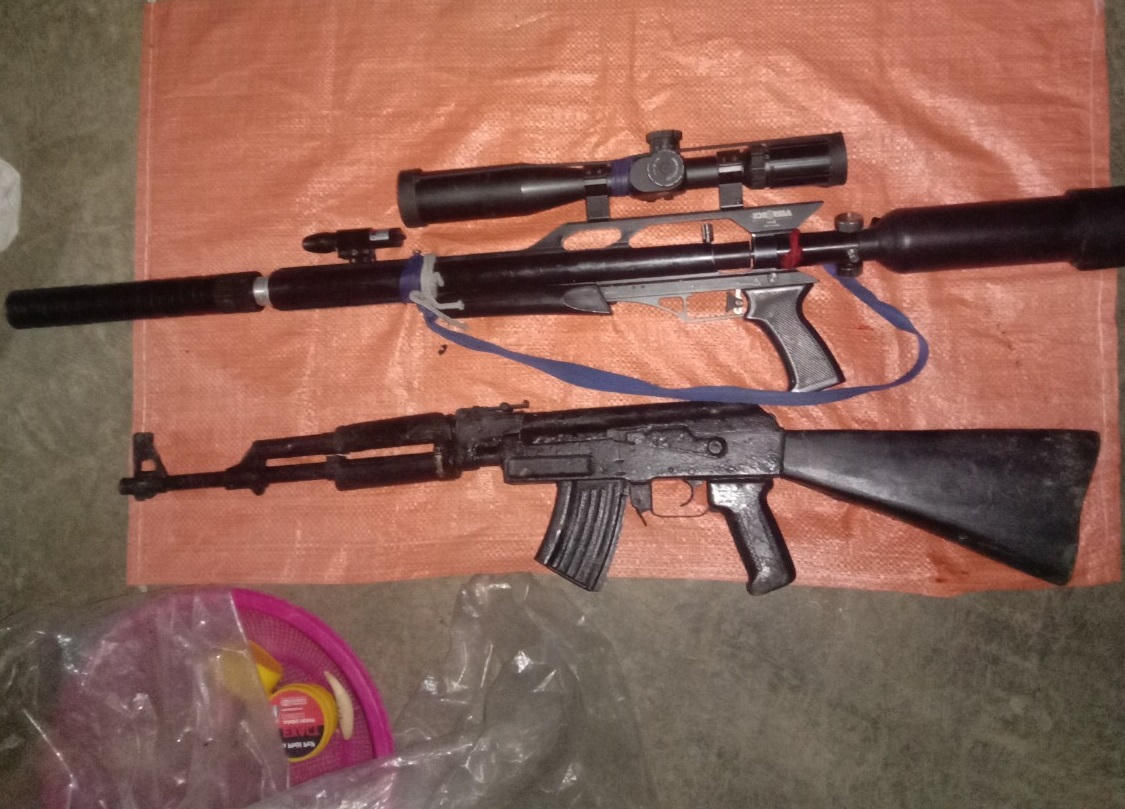 Lực lượng chức năng khám xét chỗ ở Nguyễn Văn Nhường đã thu giữ 01 súng AK và 01 súng thể thao cùng một số sản phẩm động vật rừng hoang dã...