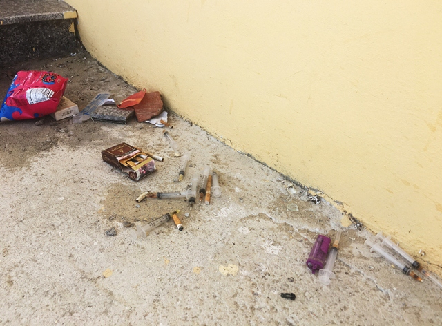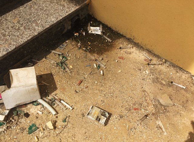 Ghi nhận của phóng viên, trong, ngoài khuôn viên chợ, kim tiêm vứt ngổn ngang kèm theo đó là nhiều dụng cụ mà các con nghiện sử dụng, có cả thuốc lá, bao cao su.