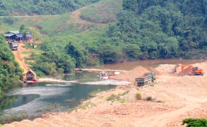 Bãi khai thác cát bên cầu Khe Liệt ngụy trang cho việc phá rừng, tập kết và vận chuyển gỗ lậu (ảnh chụp tháng 4/2020). Ảnh: T.N.Phong