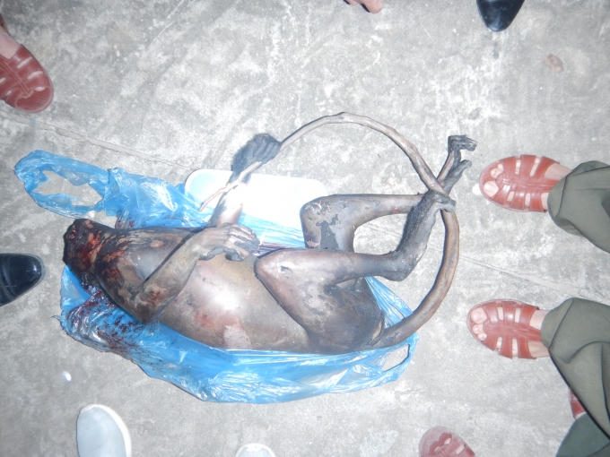 Trên xe có chở 01 cá thể Vọoc Hà Tĩnh (Trachypithecus hatinhensis) đã chết, có trọng lượng khoảng 9kg, được cất giấu trong 01 thùng xốp màu trắng (không có nắp).
